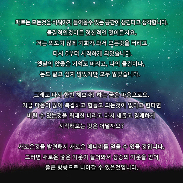 때로는 모든것을 비워야지 들어올 수 있는 공간이 생긴다고 생각합니다.