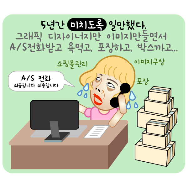 A/S전화받고 욕먹고, 포장하고, 박스까고....