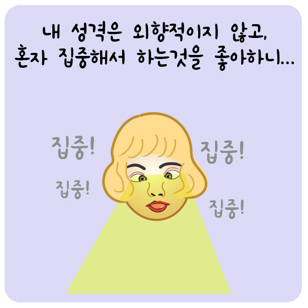 혼자 집중해서 하는 것을 좋아하니...