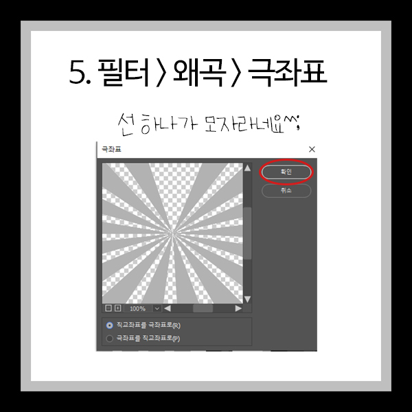 5. 상단 필터 메뉴 > 왜곡 > 극좌표