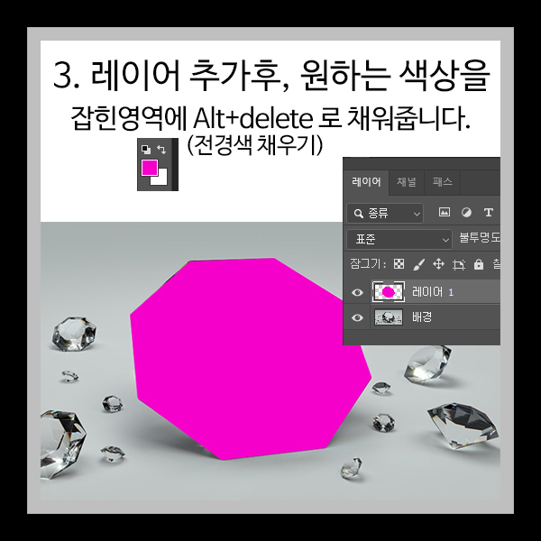 3. 빈 레이어 추가후, 원하는 색상을 Alt + delete (전경색 채우기) 로 채워줍니다.