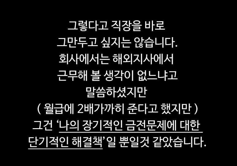 그건 '나의 장기적인 금전문제에 대한 단기적인 해결책' 일 뿐일것 같았습니다.