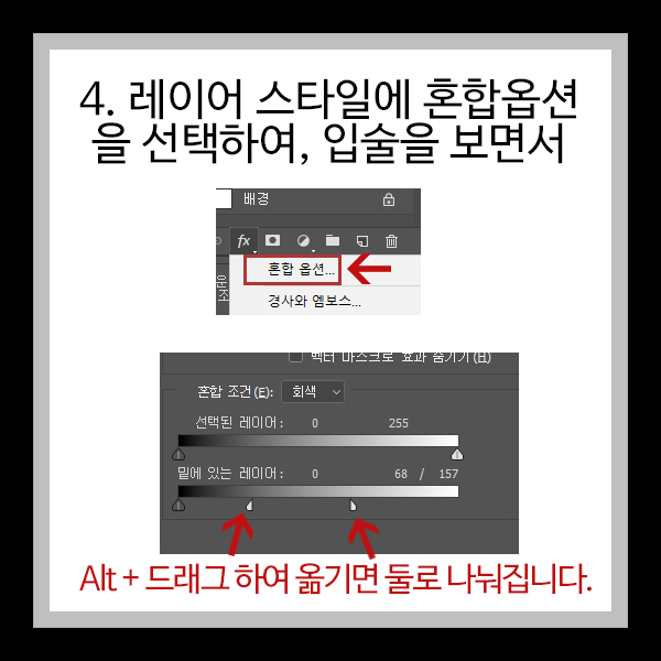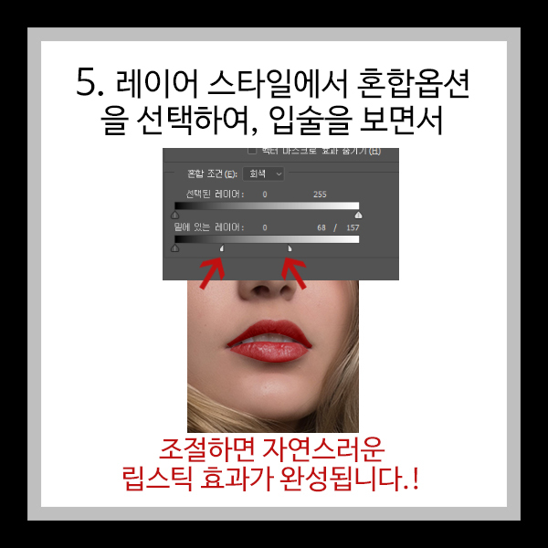 4. 레이어 스타일에 혼합옵션을 선택하여, 입술을 보면서