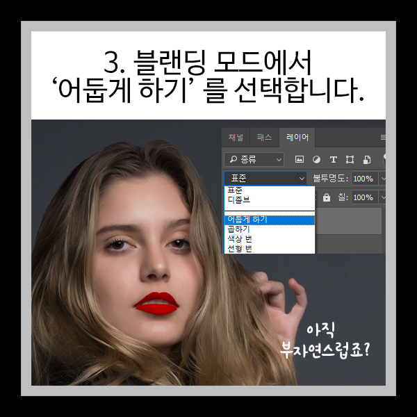 3. 블랜딩 모드에서 '어둡게하기'를 선택합니다.