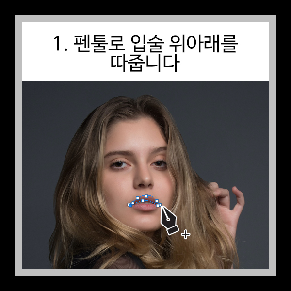1. 펜툴로 입술 위아래를 따줍니다.